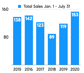 ​​​​​​​Remarkably, August appears to be another strong month for total sales as well. Through August 28th, 27 homes have closed in our multiple listing service and an additional 48 homes are under contract.